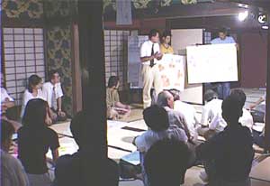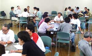 4つのグループに分かれて活動することは、塾生それぞれの参加の多様性を確保すると同時に、まちづくり全般に渡る総合的プロジュースを創り上げていくことを想定したものでした。また各班ごとの活動と同時に、それぞれのリーダーおよび運営スタッフで構成される運営委員会で協議されるという運営システムも一応はつくられました。しかし現実には、4つの班に分かれることによって草津塾全体のマネジメントに集中していくべき人材が分散し、各班にあってはそれぞれが分野ごとの専門的なマネジメントを形成していくには至りませんでした。