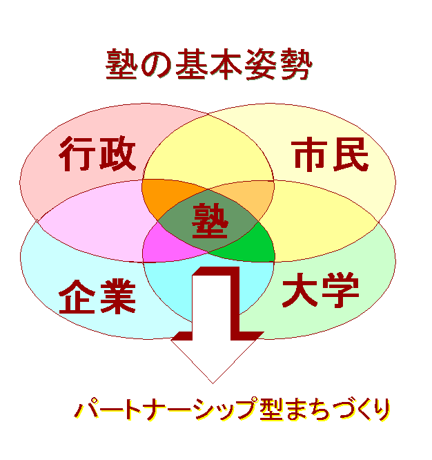 情勢(歴史や社会の現状)とは、それを総合的に捉え、次の時代を形成していく過渡的段階をどう形成していくのかという観点から活用すべきなのであり、また、行政主導型からパートナーシップ型まちづくりへの構造的な転換を担ううえでポイントとなる「人」や「組織」をクローズアップし、その動きと連携しながら草津塾そのものを活性化していくべきなのでしょう。